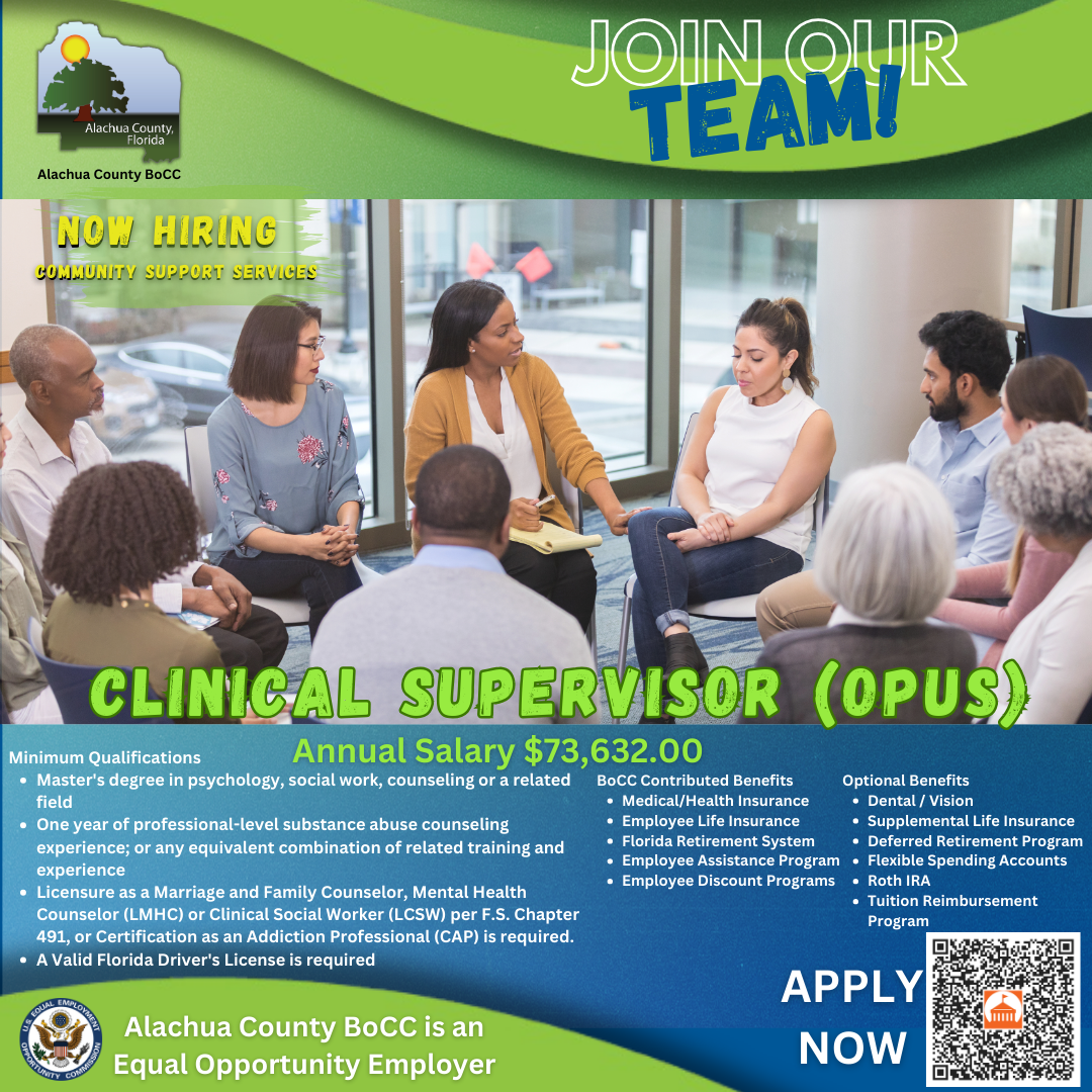 Alachua County is an Affirmative Action/Equal Opportunity employer. Alachua County gives preference in initial employment to eligible veterans and spouses of disabled veterans.